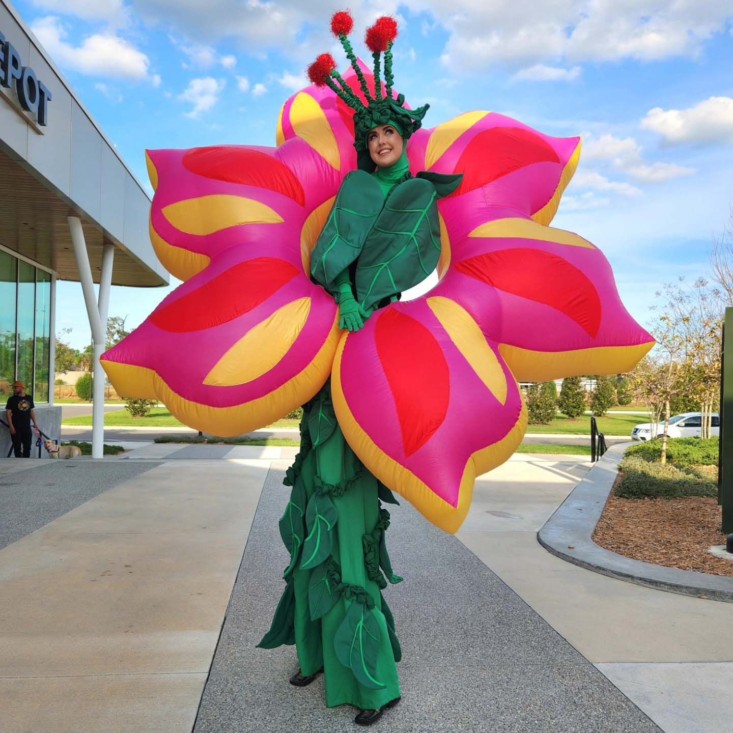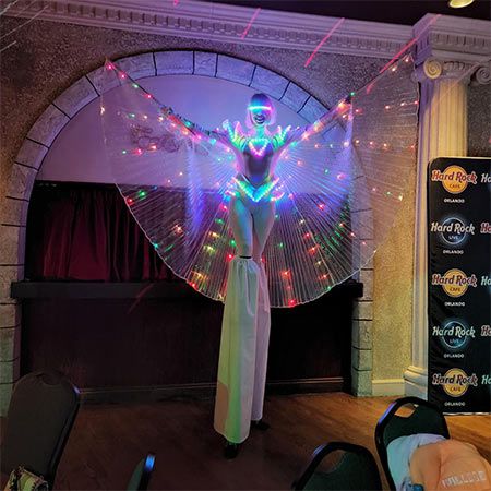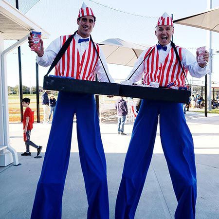 Suitable for all ages our roaming stilt walkers have pleased guests for Adidas, The University of Central Florida and SeaWorld Adventure Parks