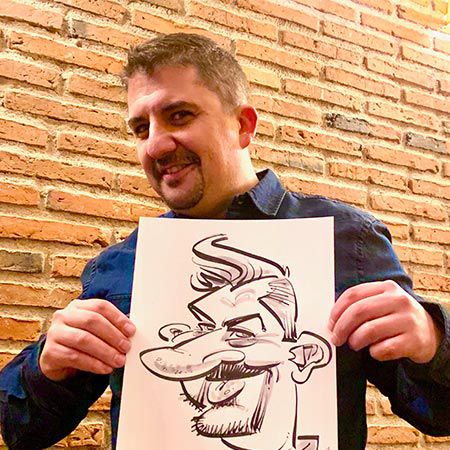 This novelty caricaturist from Madrid can travel anywhere to entertain and amaze guests with his rapid portraits created in coloured chalk