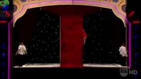 Transparent Wall Acrobats perform neck-breaking acrobatics while running on a vertical wall, powered by two trampolines at its bottom.