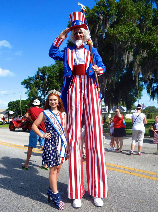 From sporting events to local fairs, this stilt walker's legendary character perfectly symbolises American heritage