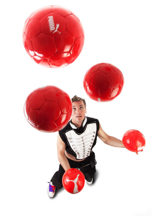 The football juggler is also available for short acts, interactive performances and promotional campaigns. His extensive list of previous includes the likes of Puma, Fifa, Coca Cola, Adidas, Ikea, MTV, F1, Dubfest Dubai, Puma, Nike and many other s.