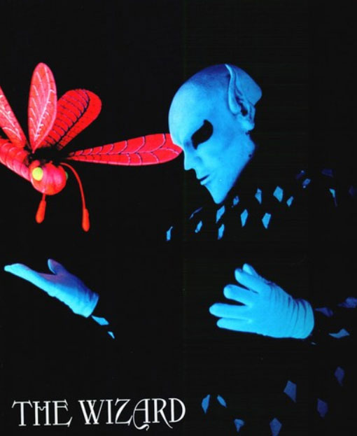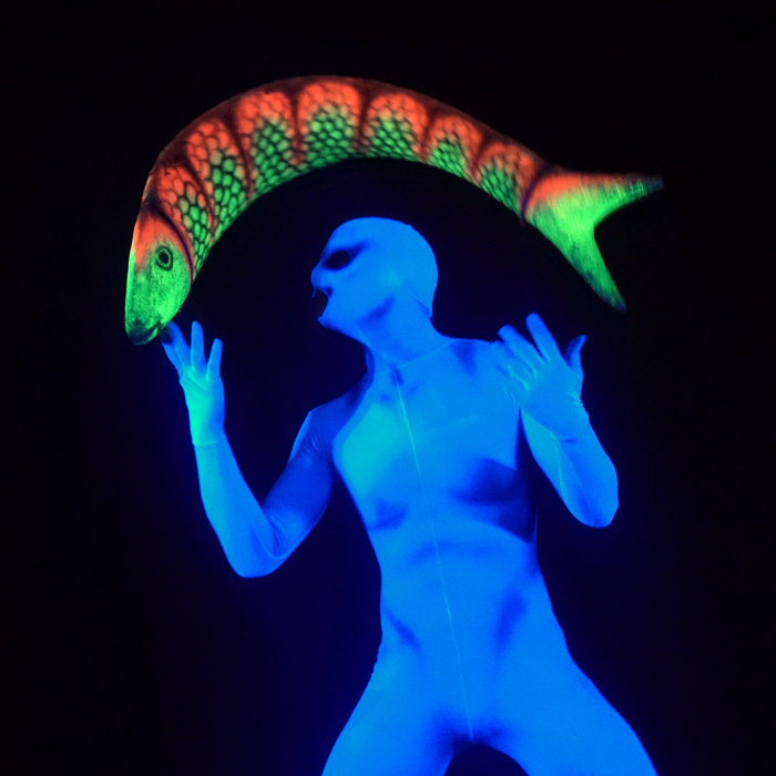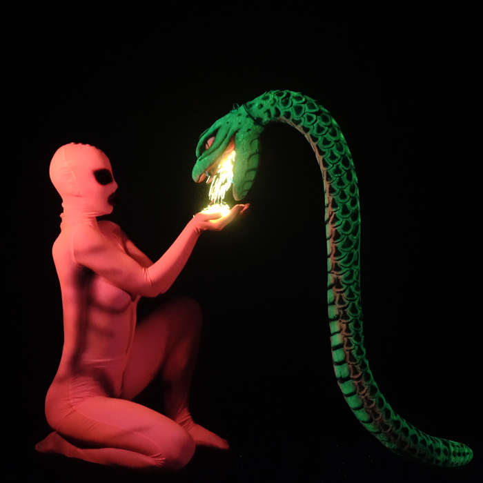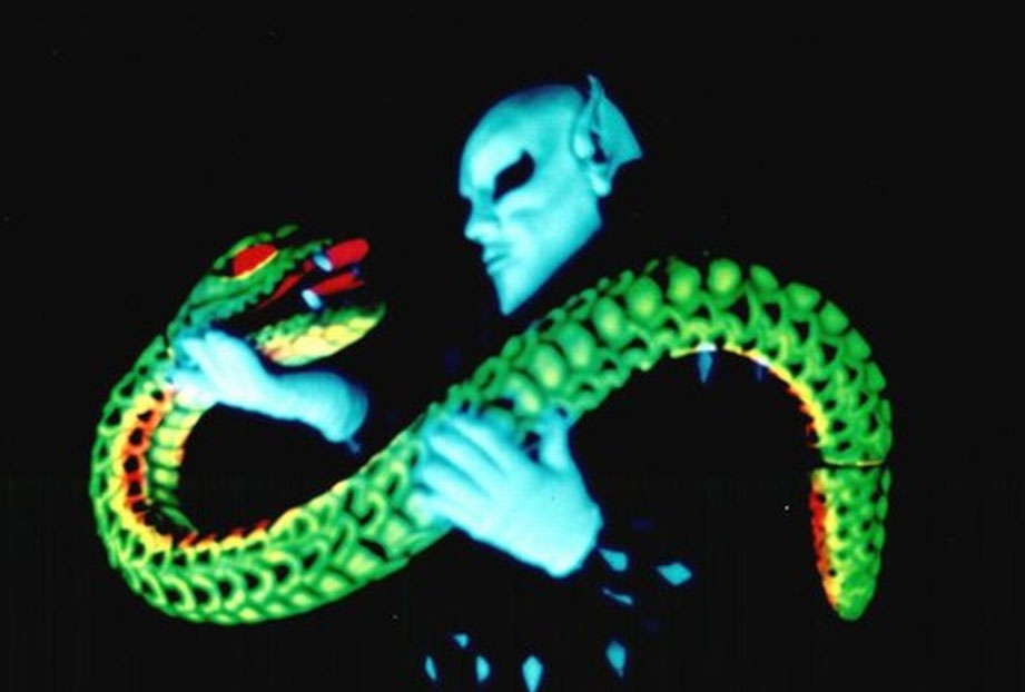 A star expands and supernovas, filling the stage with a cascade of twinkling lasers which spin intricate patterns through the darkness. The UV Magician’s face flies off and disperses into hundreds of pieces. He ascends majestically from the ground and a twenty metre snake of pulsating coloured lights ejects itself from his mouth. This unique show has to be seen to be believed!