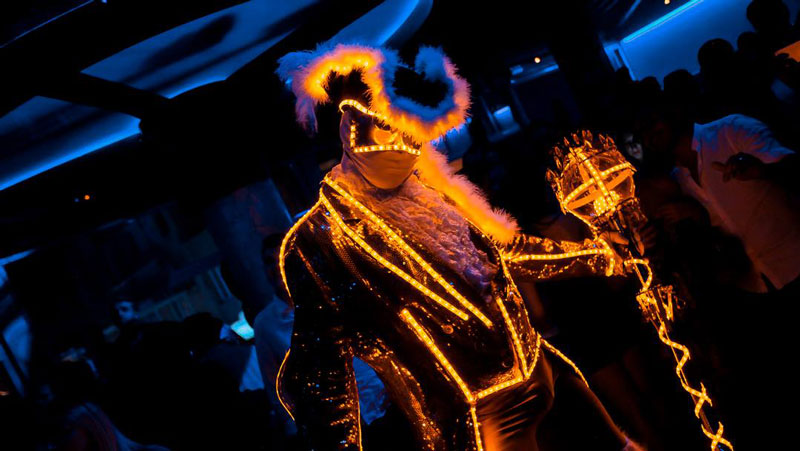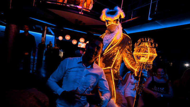 Especially suitable for Carnival and Venetian themed events, this LED gold performer is a popular mix and mingle entertainment option for nightclubs, VIP parties, parades and other evens with dark environments. Able to perform both indoors and outdoors, our LED gold performer can fill any room or space with his bright presence.
