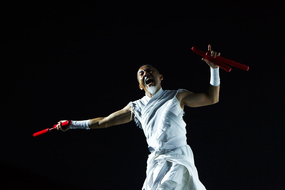 This Japanese act combines the movement and rhythm of Karate and Kabuki and astounding use of Nunchaku. Kabuki is traditional of Japanese culture and a type of theatrical street dance. Combined with the masterful uses of the nunchucks and karate stylings, this Japanese act creates an original video mapping dance show.