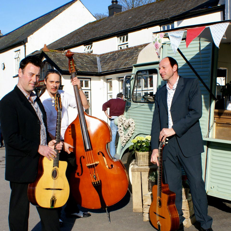 As Cornwall’s leading gypsy jazz band, they having played at countless weddings, functions and events, as well as regularly performing for dance groups wanting that authentic, vintage swing.