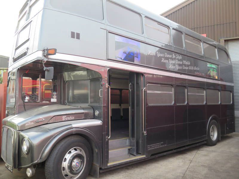 Unique and innovative, our vintage party bus is a classic Routemaster, re-styled in chic gun-metal-grey for a more modern aesthetic and fully equipped with its own generator, heating and cool air system.