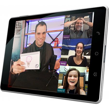 All guests need is a laptop or device to watch the show on with a strong internet connection. If using Streamyard and Youtube Live Unlisted you will be issued a link to share with guests prior to the event, there's no need to download anything and guests can enjoy the show from any internet browser. Volunteers will need a webcam on their device to appear on screen! Streamyard provides an incredible entertainment experience, allows guests who want to take part in a trick to hop in and out of a virtual 'backstage area' as required and the audience can submit comments and emojis in real-time that appear on the screen and our artist can respond to. It’s the perfect platform for live-streamed event experiences!