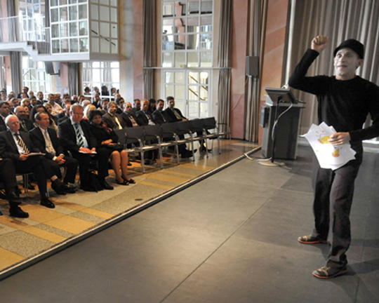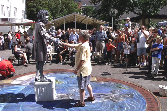" ...excites much attention from the Nürnberg public posing as a mysterious statue... "