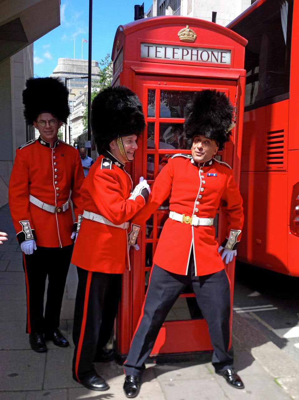 Palace guard walkabout act complete with bearskin caps and red uniforms