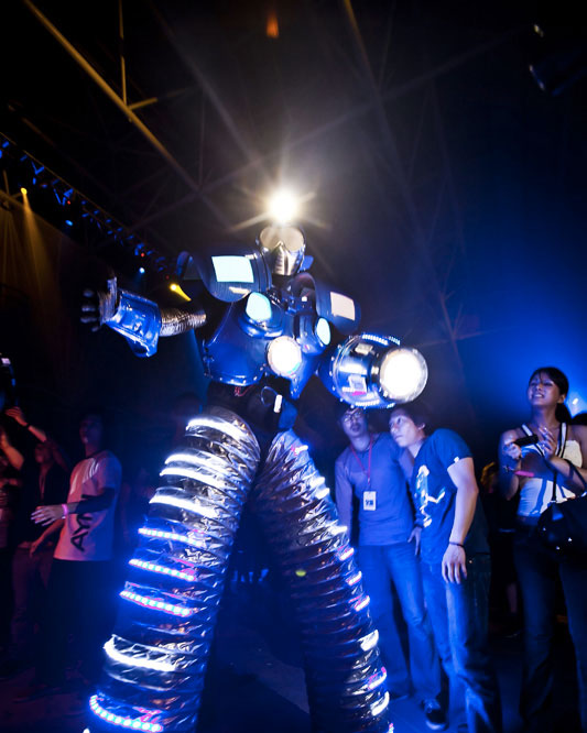 Built with an industrial look, these twin robots are ideal entertainment for a range of occasions, and are particularly popular with club nights and tech events due to their LED special effects.