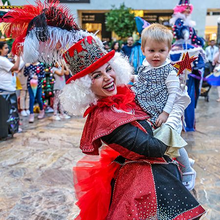 Our jolly circus troupe features colourful costumes and plenty of interactive fun from jugglers, stilt walkers, harlequins and carousel ladies