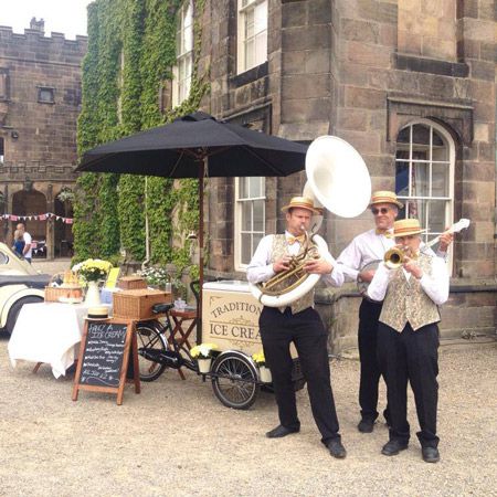 Our roaming band can play anything from movie theme tunes, including The Jungle Book and Mission Impossible to jazz, swing and pop classics
