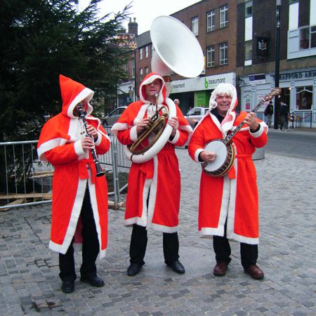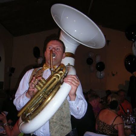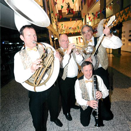 Our walkabout musicians can also perform stationery sets and offer a range of lineups featuring trumpets, trombones, sousaphones and banjos