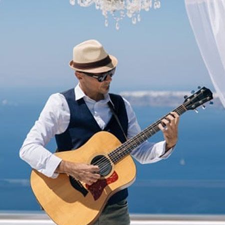 With over a decade of singing at events, this talented Santorini singer offers a sublime selection of ambient music for your wedding