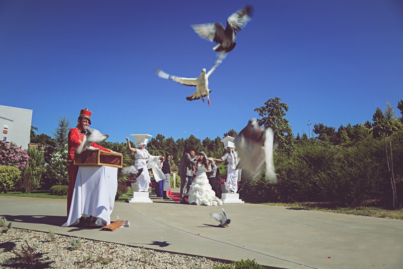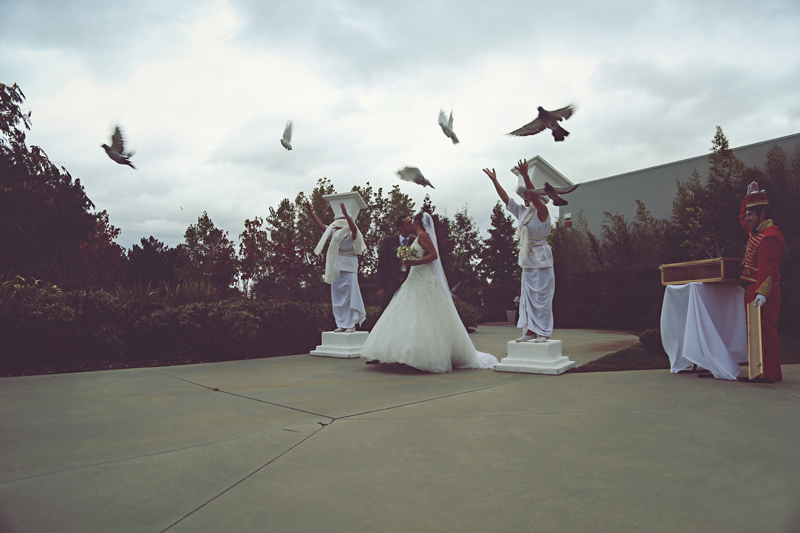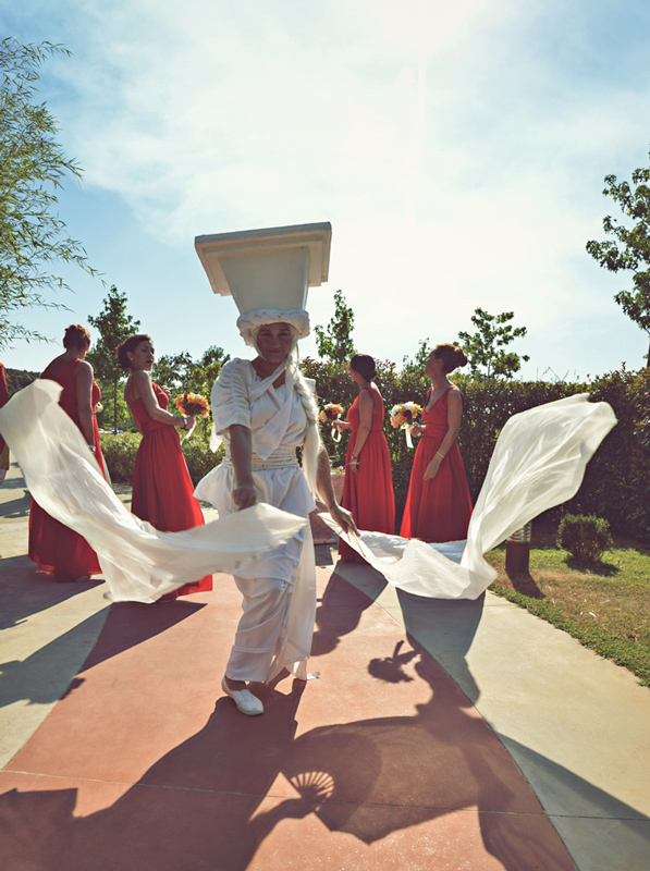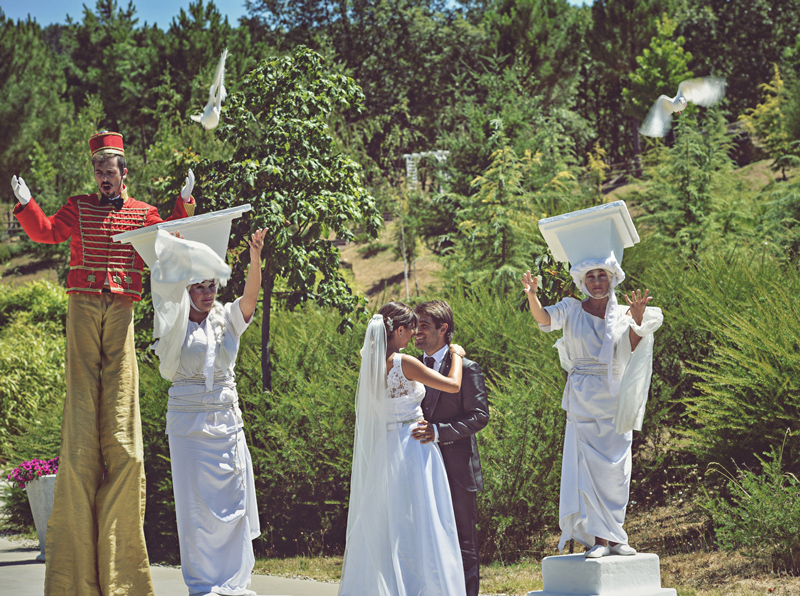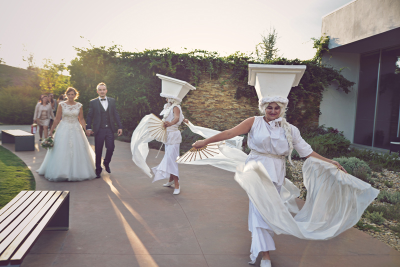 Stationed at the entrance of your reception venue, these gorgeous white living statues can offer guests a warm welcome. Our themed human statues can step out of their mount to roam around your venue or accompany newlyweds on their way to their reception.