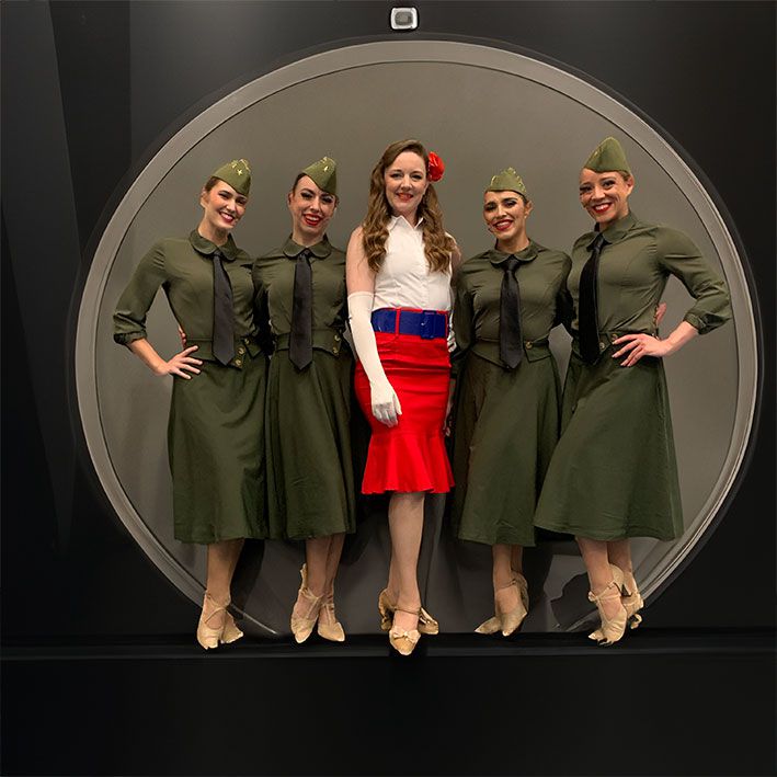Dieser wundervolle Akt im Kriegsstil bietet Unterhaltung mit Gesang und Tanz, die perfekt für jede USO-veranstaltung geeignet ist.