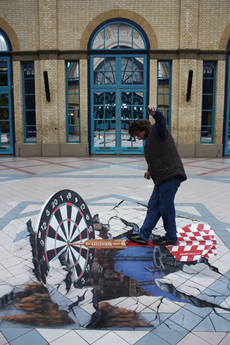Dieser unglaubliche Straßenkünstler aus Deutschland kreiert Kunstwerke auf Gehwegen, Bürgersteigen und jedem anderen Bodenbelag mit farbigen Kreiden oder Acrylfarben. Sein Stil vereint die volkstümliche Malerei des 16. Jahrhunderts aus Italien mit der modernen Wahrnehmung der Illusionsmalerei, um realistische Werke zu schaffen, die Passanten einladen, in eine andere Welt einzutauchen.