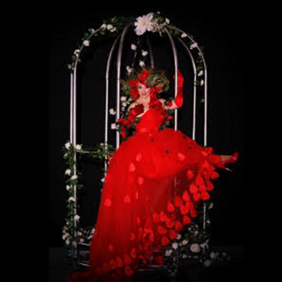 Unser Riesenvogelkäfig präsentiert eine talentierte Luftakrobatin, die ihre erstaunlichen akrobatischen Fähigkeiten zur Schau stellt, um einen Mittelpunkt bei Ihrer Veranstaltung zu schaffen.