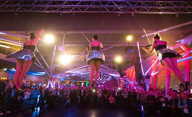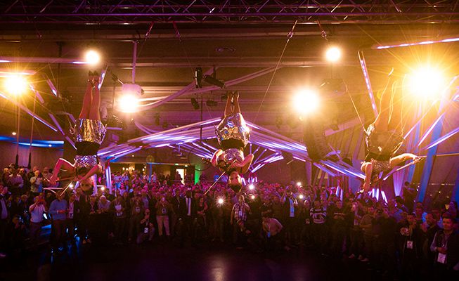 Ein musikalisches Bühnenprogramm mit akrobatischer Energie und Eleganz schafft die perfekte Mischung aus klassischen Violinen und dynamischer Performance für jede Feier.