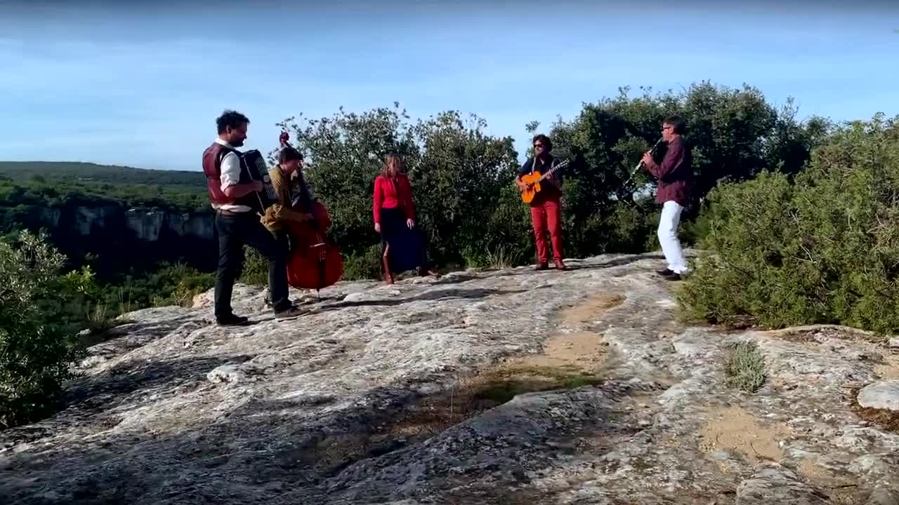 Diese akustische Fünf-Mann-Band stammt aus dem Süden Frankreichs und umfasst eine Gitarre, ein Akkordeon, eine Klarinette, einen Kontrabass und ein Cajon.
