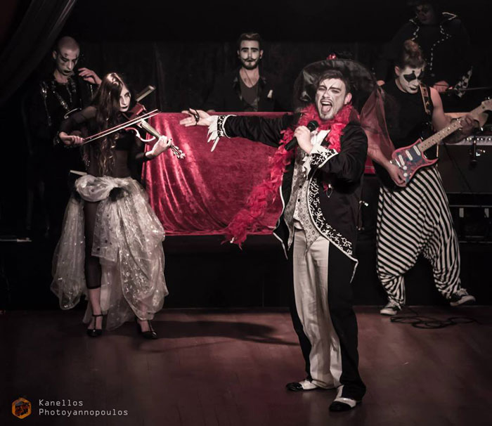 Inspiriert von den reisenden Zirkusseitenhows vergangener Zeiten, hat das Athens Musical Circus Cabaret Vintage-Kostüme, Fantasie-Requisiten und verdrehte Cirque-Stil-Make-up. Aus einer Hintergrundgeschichte in darstellender Kunst haben sie eine einzigartige Zirkusshow in Griechenland geschaffen, die eine Vielzahl talentierter Unterhalter vereint. Dazu gehören Luftakrobaten, Kontorsionisten und zeitgenössische Tänzer, begleitet von Sängern und Live-Musikern, die ihre eigenen Kompositionen spielen.