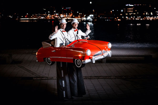 Auf der Suche nach einzigartigen Stelzenkünstlern oder Auto-Themen-Unterhaltung, die garantiert einen bleibenden Eindruck hinterlässt? Unser professionelles Stelzen-Duo ist das ultimative Thema für Stelzenläufer und kann bei Ihrer Veranstaltung als glänzend roter Vintage-Cabriolet erscheinen! Dies ist eine Stelzen-Show wie keine andere, die Sie jemals zuvor gesehen haben; sie ist die einzige ihrer Art auf der Welt und durch Copyright geschützt.