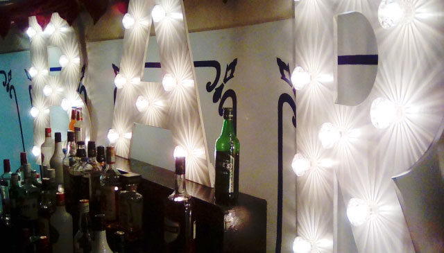 Leuchtbuchstaben BAR sind ebenfalls zur Miete erhältlich