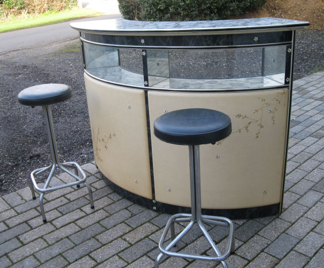 - Cocktailbar im Stil der 1950er Jahre mit passenden Barhockern im amerikanischen Diner-Stil der 50er Jahre. Vintage-Barzubehör ist auch zur Miete erhältlich (einzeln und als Paket), ideal für thematische Partys der 1950er, 60er, 70er und 80er Jahre.