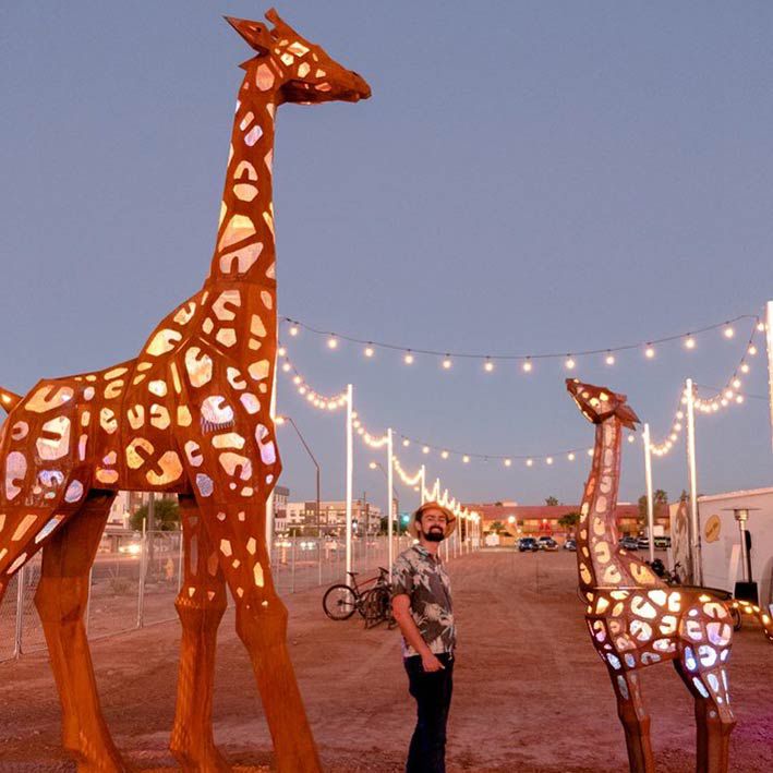 Mit Sitz in Kalifornien sind seine metallenen Lichtskulpturen im Origami-Stil ideal für festliche Installationen, Tier- oder Dschungel-verwandte Veranstaltungen.