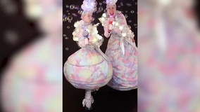 Gekleidet von Kopf bis Fuß in LED-Fantasie-Bonbonfarben, schwebt dieses fröhliche Paar in einer Wolke aus Seifenblasen, um eine magische Atmosphäre zu schaffen.