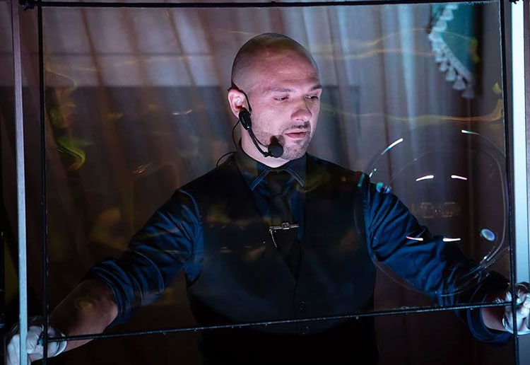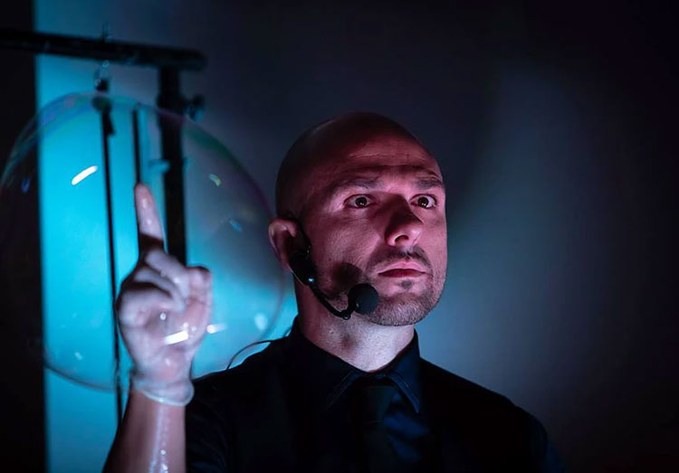 Ein bemerkenswerter Seifenblasen-Magier, der seine Zaubershow mit einer unglaublichen Seifenblasen-Nummer verbindet, erstaunt und begeistert das Publikum mit seinen außerirdischen Tricks und seiner Fähigkeit, atemberaubende Kunstwerke mit einfachen Seifenblasen zu erschaffen. Eine interaktive Seifenblasen-Show, die bei Zuschauern jeden Alters gut ankommt.
