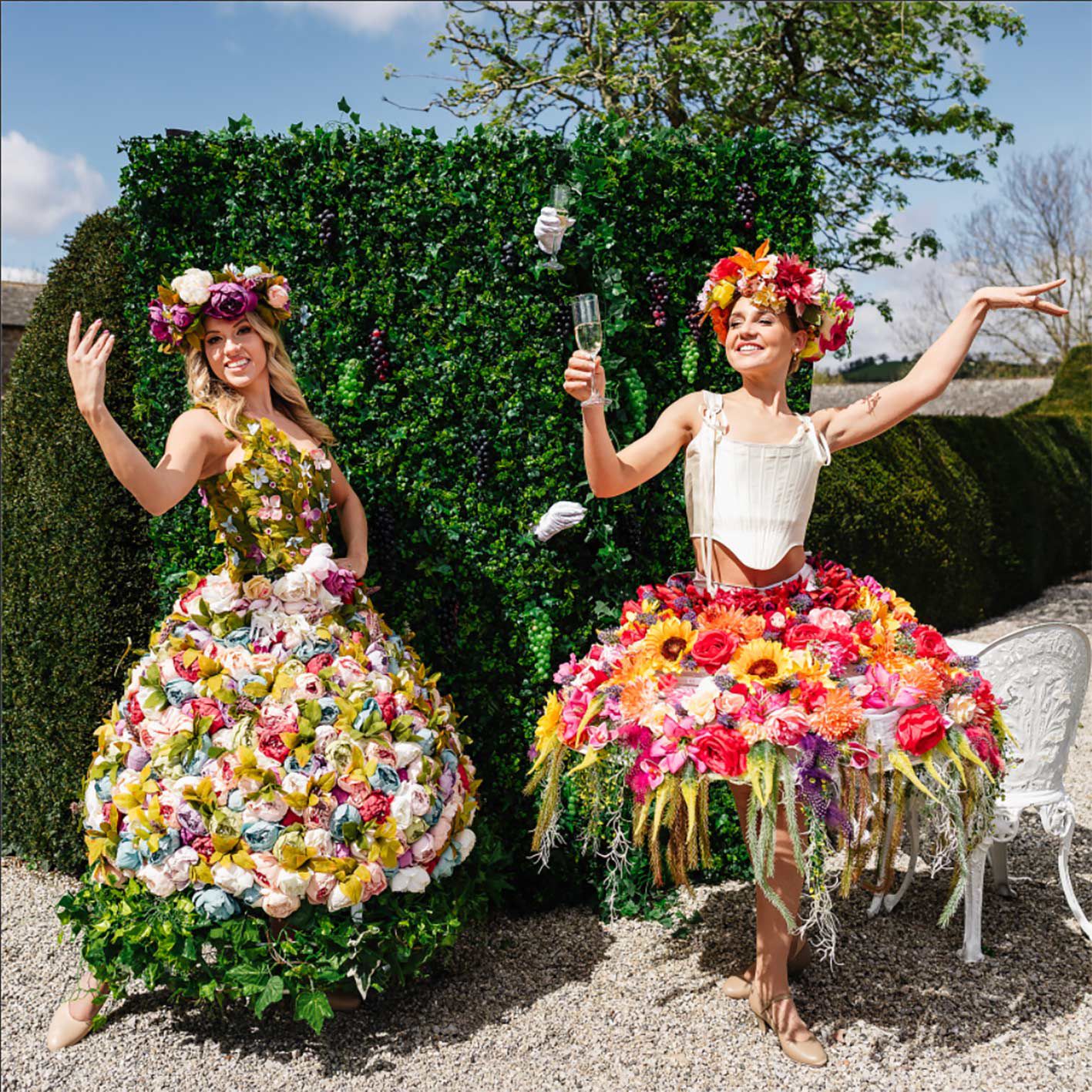 Gekleidet in atemberaubende blumengeschmückte Kostüme bieten unsere Künstler eine Mischung aus interaktiver Roaming-Unterhaltung und beeindruckenden Pop-up-Auftritten.