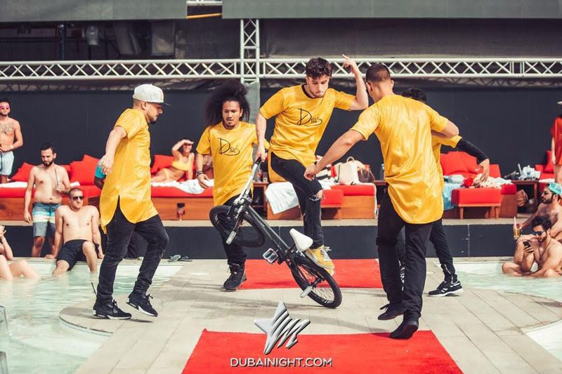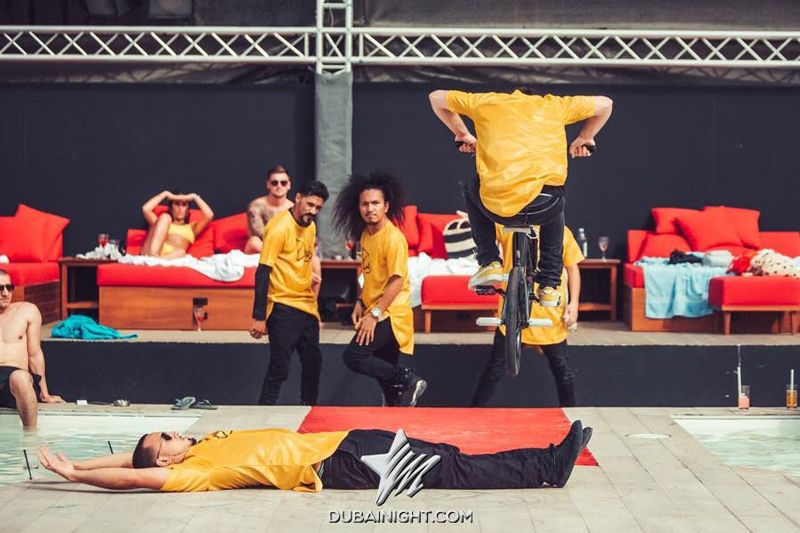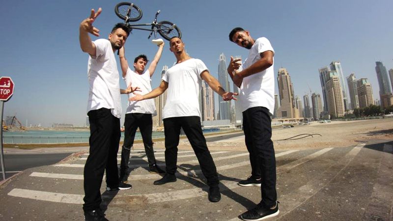 Ausgeführt von einer kreativen Gruppe von Künstlern, die sich auf BMX-Fahren und Bboying spezialisiert haben.