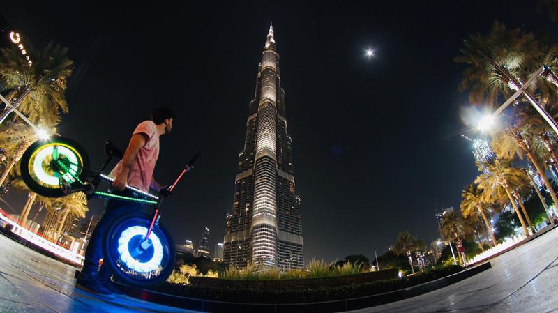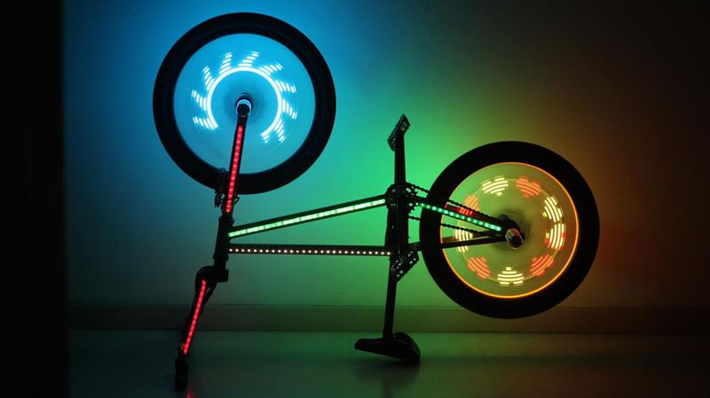 BMX-Fahrer kann eine größere visuelle Wirkung erzielen, indem er mit seinem LED-Fahrrad auftritt, das mit wechselnden, bunten und programmierbaren LED-Lichtern ausgestattet ist!