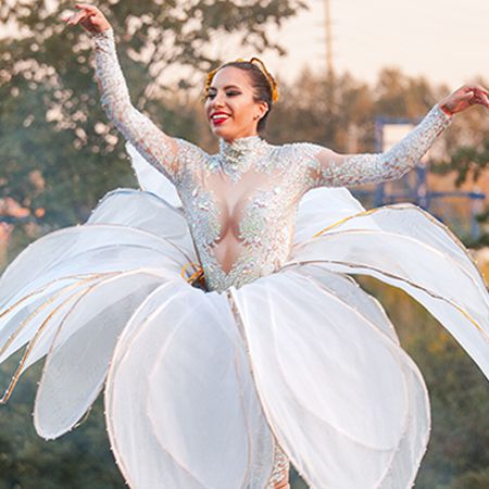 Mit Sitz in Toronto können Sie diese herumstreifenden floralen Stelzengänger für verzauberte Gartenfeiern, Outdoor-Cocktail-Empfänge und Sommerveranstaltungen buchen.
