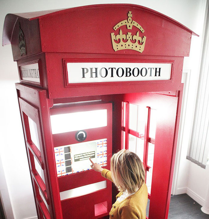 Ein völlig origineller Fotoservice, dieser einzigartige Stand ist in Form einer traditionellen roten britischen Telefonzelle gestaltet und wird dank seines einzigartigen Erscheinungsbilds und des qualitativ hochwertigen Fotodrucks sicherlich Gäste auf Ihrer Veranstaltung anziehen.