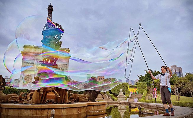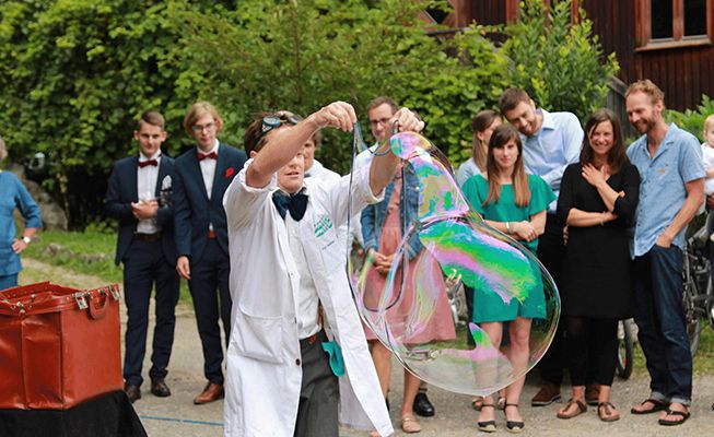 Dieser Seifenblasenkünstler fügt Hochzeiten, Festivals, Schulfesten und Firmenveranstaltungen mit einzigartiger, interaktiver Unterhaltung eine Prise Staunen hinzu.