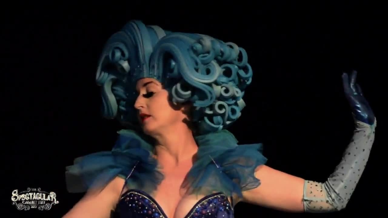 Sie verfügt über ein umfangreiches Repertoire an opulenten Kostümen für komödiantische Burlesque-Auftritte, bei denen sie auf Stelzen steht, mit Federfächern, Fächerschleiern oder in einem Martiniglas auftritt.