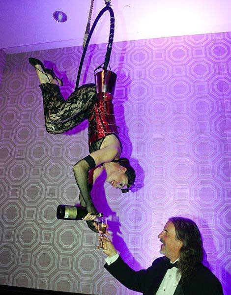 Mit beeindruckender Fähigkeit, Stärke und Flexibilität werden diese atemberaubenden Luftakrobaten den erstaunten Gästen unter ihnen Champagner servieren, während sie die ganze Zeit an einem Luftreifen hängen. Ein erstaunliches visuelles Spektakel, werden diese talentierten Luftakrobaten auch unglaubliche Routinen vorführen, zur Freude der Anwesenden.
