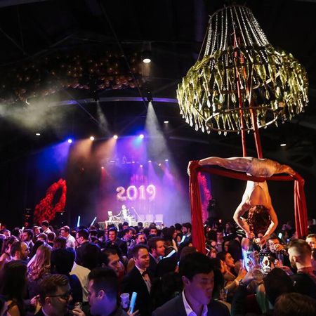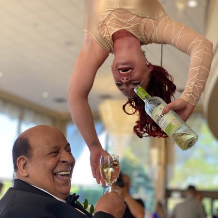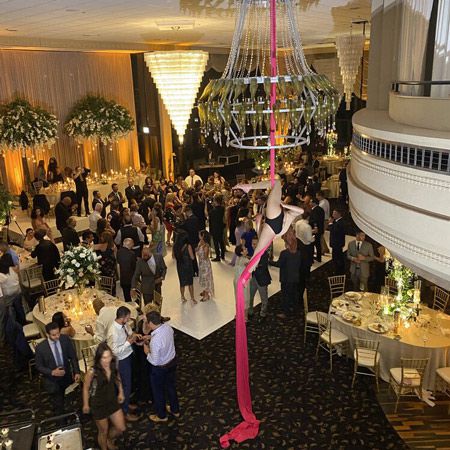 Machen Sie Ihr nächstes Event zu einem unvergesslichen Erlebnis mit unserem Champagner-Kronleuchter-Akrobaten, der für Buchungen in ganz Amerika und der Welt verfügbar ist.