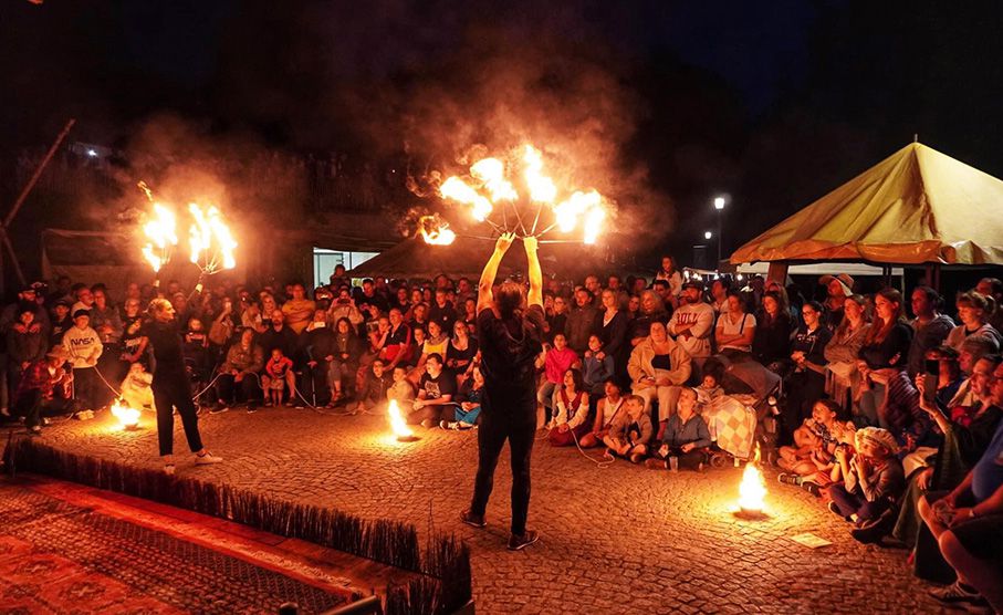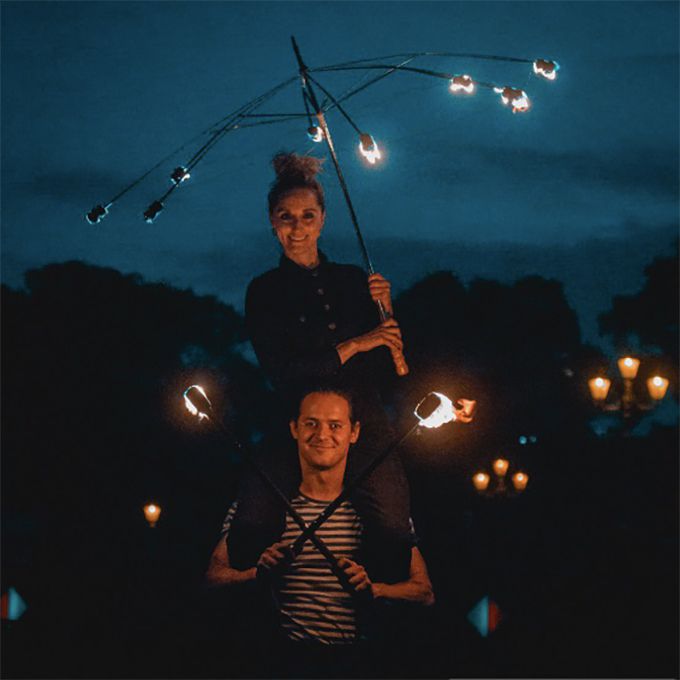 Eine energiegeladene Mischung aus Partnerakrobatik, Feuervorführungen, Jonglieren und physischer Komödie in einer aufregenden Darbietung.