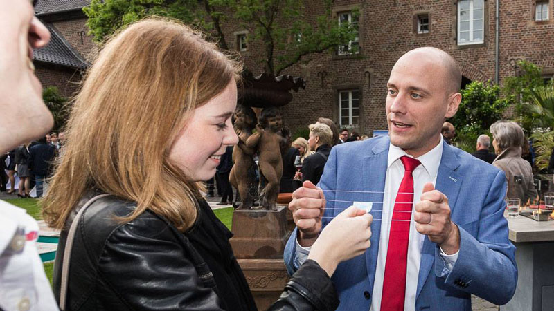 Die perfekte Aufmerksamkeitserregung, Close-Up-Magie-Tricks sind bei Messebesuchern immer beliebt. Das unglaubliche Talent und die freundliche Art dieses deutschen Flaniermagiers werden Ihren Stand schnell zum belebtesten Stand auf Ihrer Veranstaltung machen.