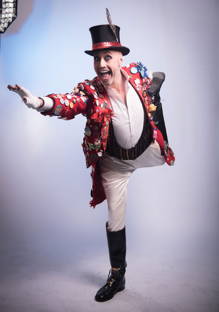 Unser vielseitiger Entertainer ist auch als Drag Queen Moderator und Sänger sowie als Kabarett-Sänger verfügbar.