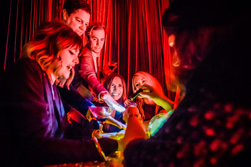 Die Darbietung kann zwischen den Tischen wechseln oder in ihrem eigenen, dedizierten Bereich installiert werden, wo die Gäste vorbeischlendern können, wenn die Neugierde zu groß wird. Sie kann ihre Auftritte an die Zeitpläne Ihrer Veranstaltung anpassen, zum Beispiel zwischen den Gängen bei einem Abendessen auftreten oder zwischen den Reden bei einer Preisverleihung.