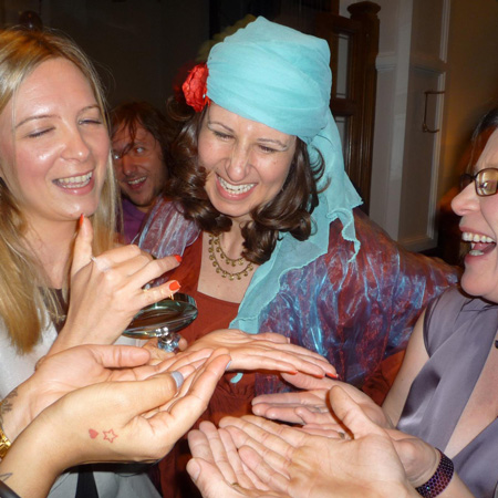 Gekleidet in all der traditionellen Kleidung ihres Handwerks hat unsere gedankenlesende Mystikerin zahlreiche Methoden, um in Ihre astralen Ebenen einzutauchen und alles über Ihre Zukunft zu erfahren. Handlesen, Tarotkartenlegen, Handtaschenlesen, Lippenstiftlesen, Sandlesen, Kristallkugeln und ganz einfaches, altmodisches Gedankenlesen gehören alle zu ihrem Repertoire.