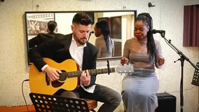 Unser international gefeiertes Jazz-Duo besteht aus einer atemberaubenden Sängerin, begleitet von bluesiger elektrischer oder sanfter akustischer Gitarre. Unsere sensationelle sängerin, die in Simbabwe geboren wurde, wurde 2013 zur "Besten Musical-Darstellerin in Afrika" gekrönt, und Sie werden verstehen, warum, sobald Sie ihre gefühlvolle, fesselnde Stimme hören. Unser talentierter Gitarrist ist die perfekte Begleitung, da er jahrelang als Studiomusiker gearbeitet und international getourt hat.