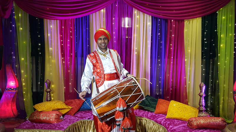 Unsere energiegeladene und rhythmische Darbietung der Dhol-Trommler wird Ihre Füße zum Mitwippen bringen und dafür sorgen, dass die Gäste auf die Tanzfläche wollen.