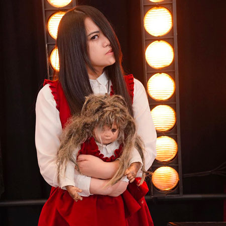 Ein Rätsel für ihre Fans ist unsere indonesische Großillusionistin bekannt durch ihre langärmelige weiße Bluse, ihr rotes Kleid, ihre langen weißen Socken und ihr dickes dunkles Haar, das die Hälfte ihres Gesichts bedeckt. Mit einer unschuldigen kindlichen Qualität in ihrem Erscheinungsbild wird diese Großillusionistin für einige Gäste schnell zum lebenden Albtraum, wenn sie sich von hinten anschleicht und Warnungen vor einer größeren Macht murmelt, die sie einholen wird.