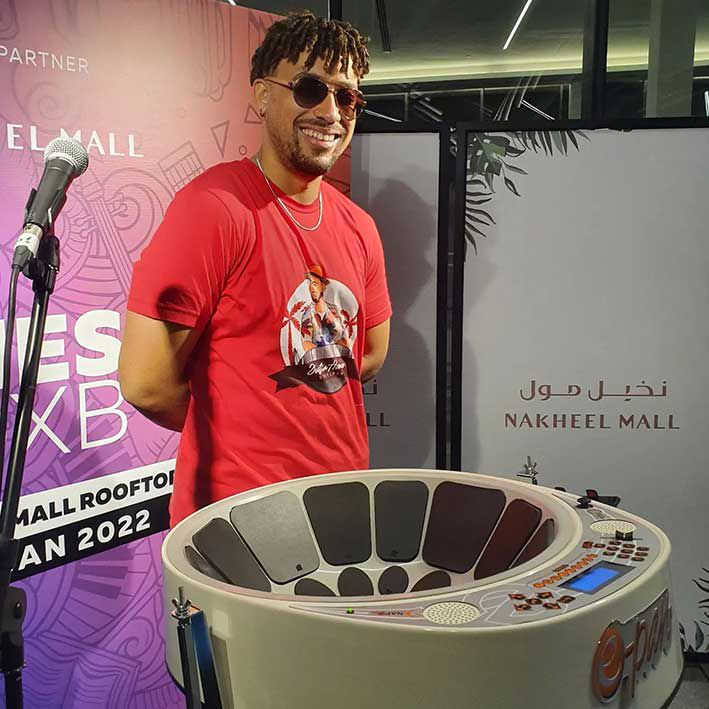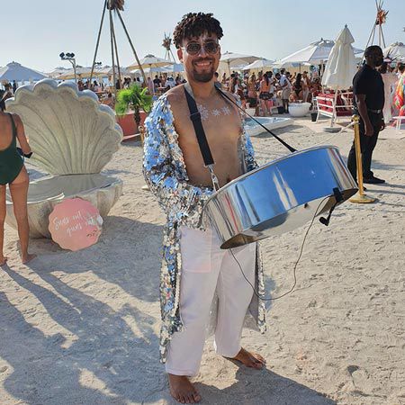 Ursprünglich aus Trinidad und Tobago stammend, ist unser Steel Pan Spieler einer der wenigen Steel Pan-Spieler, die im Nahen Osten auftreten, und hat sich bei einer Vielzahl von Veranstaltungen in und um Dubai einen Namen gemacht. Er hat bereits bei Veranstaltungen wie der Dubai Fashion Week auf der Palm Jumeirah sowie beim Bob Marley Birthday Fest aufgetreten, bei dem niemand Geringeres als Ky Mani Marley, der Sohn der Reggae-Legende selbst, dabei war. Er war auch in einer lokalen Radiosendung zu hören und wurde zu einer echten Neuheit.
