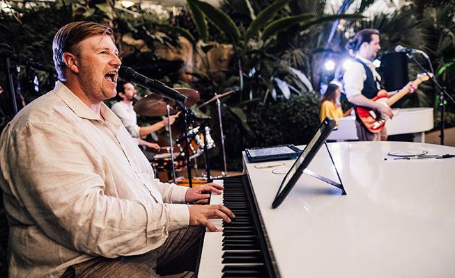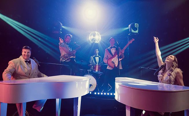 Ein energiegeladenes musikalisches Konzert mit zwei singenden Pianisten, unterstützt von einer skalierbaren Band, die Interaktion mit dem Publikum und Songwünsche bietet.